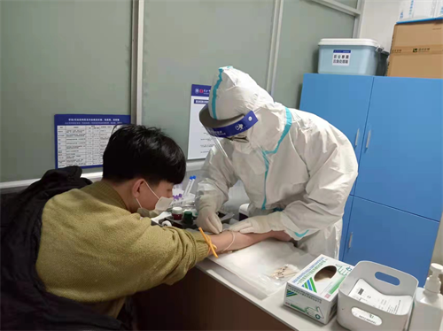 从零点值班到早上八点,是苏婷的夜班时刻,今年除夕值班,是她主动申请的。夜里发热的患者也不少,复测体温、询问流行病学史、采核酸、抽血……一项项工作让人没有停歇,尽管夜里温度很低,穿着防护服忙碌的她还是汗湿了后背。