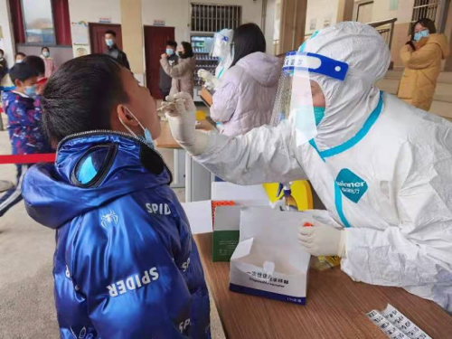 第一次给这么多孩子采集核酸,刚开始胡文涛还是有些压力的。她联想到自己的孩子,每次生病到医院采咽试纸都要费老大劲,釆核酸跟采咽试纸一样会有不适感,想必这里的孩子也会害怕、抵触、不配合。胡文涛每采集一个都会温柔地跟他们讲话,分散他们的注意力,帮助他们消除害怕情绪。一轮采集下来,胡文涛和队友都十分惊叹:孩子们都很勇敢,一个一个严格按照一米线排队,有礼貌地跟她打招呼后,便顺利接受核酸采集。