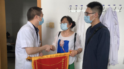 上午10时许,在我院超声科医生办公室,刘阳母子见到了刚刚会诊回来的邱跃文医生,母子俩将一面写有“妙手回春 医德高尚”的锦旗郑重地送到邱跃文手里。曾女士握住邱跃文医生的手,久久不肯松开,激动的泪水在眼眶里打转:“真的感谢,要不是遇到您,我儿子可能就没了,根本不可能好好地站在这里……”