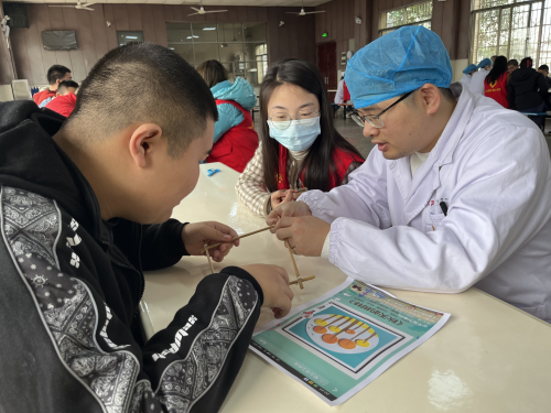 根据学校的需求,志愿者量身为“星星的孩子”进行身高体重、血压、血糖、口腔检查、日常听诊等综合体检。