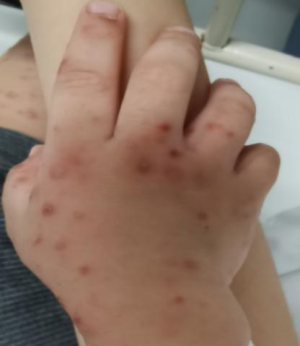 李女士回忆,儿子是6月14日晚开始发烧,测量体温有39.8℃,在家采取了一点降温措施,打算先睡一觉观察一下,谁知15日凌晨孩子突发抽搐,家长吓坏了,立马送往医院看急诊。“医生检查孩子的口腔,一看嘴里全是疱疹,经过一些检查,被确诊为手足口病。”当天下午,女儿也开始发烧抽搐,家长赶紧看了女儿的口腔,发现和弟弟一样,长满了疱疹,于是不敢耽搁赶紧送医。现在姐弟俩的手部、脚部皮肤都长出了疱疹。