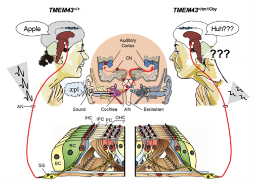 冯永教授团队通过对一个来自中国的常染色体显性耳聋家系进行分析,根据临床表型诊断为听神经病谱系障碍(也称为听神经病),遗传学分析发现TMEM43基因的杂合突变导致了该家系的听神经病,并进行了验证。与此同时,韩国研究团队也在一个韩国的听神经病家系中发现该基因相同的突变位点。双方决定联合发表这一研究成果。冯永、Byung