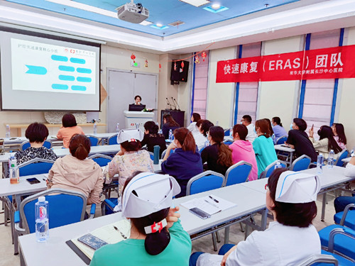 今年3月,湖南省医疗管理工作会议上明确指出要推进加速康复外科(ERAS)试点与示范病房的建设工作。我院积极贯彻落实湖南省卫健委的会议精神,将骨科、妇产科、胸外科等外科病房设立为ERAS试点病房,并迅速推进ERAS。4月30日,我院在呼吸诊疗中心一楼会议室举办了外科片区ERAS护理查房与试点病房的建设汇报会。外科片区加速康复护理小组以及部分护士代表参加了本次会议。