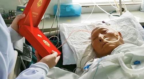 重症医学科主治医师李圆菲介绍,早年的艰难困苦给老人身体带来较大的损害,这三十余年来,老人曾多次在我院老年医学科住院,这次是因呼吸衰竭、血氧饱和度下降行气管插管后于4月27日转入重症医学科,诊断为前列腺癌并骨癌转移、肺部感染、呼吸衰竭、慢性肾脏病、低蛋白血症、脑梗死、冠心病、慢性心力衰竭等18种疾病。但是这个九十二岁高龄的老党员,在与疾病的抗争中依旧保持着顽强的战斗精神,不屈不饶的和病魔斗争,给医护人员带来了极大的激励和鼓舞。