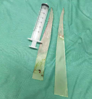陆先生达到医院急诊科后,接诊医生检查后发现两块玻璃横插在其体内,深度都在10cm以上,且位置特殊,与颈部重要血管、神经相邻。情况紧急,急诊科马上启动绿色通道,通知医院创伤中心专家会诊,随后将陆先生转入脊柱外科,完善术前准备后在全麻下行颈部及肩部异物取出术。