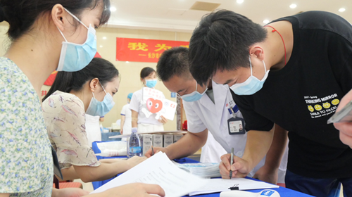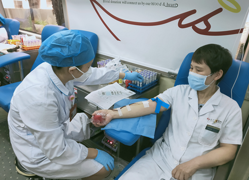 医院党员干部充分发挥先锋模范作用,纷纷带头参与主题为“我为患者献热血”的“党史学习教育—我为群众办实事”特别活动。据统计,当天共有150人报名参与,113人成功献血,献血量达39030 ml。参加献血的不仅有医生、护士、行政后勤人员、退伍军人,还有在医院实习和培训的医疗护理实习生、规培生等。他们或是趁着工作间隙,或是刚下了晚夜班,或是放弃了休息赶来,还有的带着4岁的女儿一起过来。献血结束后,很多人顾不上休息又立即返回各自的工作岗位,脊柱外科副主任医师何友智拿着无偿献血证立马赶去看门诊。院前急救站罗海文出车回院后,来不及脱下已经透湿的工作服,在献血车离开医院前最后一个献血。