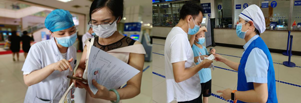 8月初,随着疫情防控工作收紧,医院一夜之间进入了“战时”状态。为减少感染风险,防止人群聚集,门急诊需要大批志愿者协助维持就诊秩序。