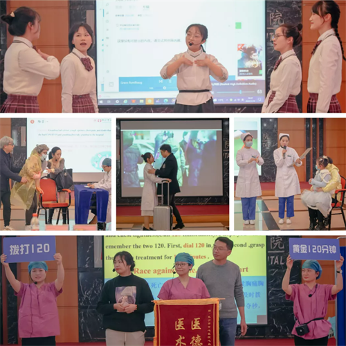 竞赛经过各分工会初赛,最终共有18支队伍参加决赛。表演内容均为医务人员自编自导自演的原创节目,有致敬经典的《my heart will go on》、《幸福来敲门电影介绍》;有歌颂最美抗疫者的《疫情下的结核病房》《Heedless of their ownsafety, medical workers headed for the frontline against the virus》;有轻松幽默的健康教育情景剧《新白娘子外传》、《Either contraception orbaby》、《Mask will protect you》《Brocade Aerobic》;还有英文歌曲、英文演讲等等。参赛节目不仅紧密结合临床,表演内容丰富,而且形式精彩多样。参赛者们英语口语熟练流畅,舞蹈、演讲、唱歌等才艺表演真可谓八仙过海各显神通,欢歌笑语精彩纷呈。现场掌声、笑声、欢呼声此起彼伏,精彩的表演让许多英语爱好者全程掏出手机录播,唯恐错过任何一个精彩片段。