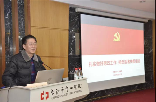 中南大学张金学教授以《扎实做好思政工作 担负医者神圣使命》为题,深入讲解了党务工作与思想政治教育、思想政治教育内容与方法、医院党务与思政教育途径等内容。