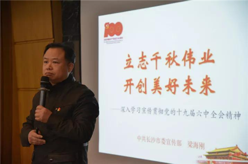 省级理论宣讲专家梁海刚以《立志千秋伟业 开创美好未来》为题,围绕具有重大历史意义的会议、党的百年奋斗重大成就和党的百年奋斗历史经验三个方面,带领学员深入学习宣传贯彻党的第十九届六中全会精神。