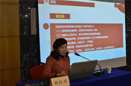院纪委副书记、内部监督科科长刘红烈对《中国共产党纪律检查委员会工作条例》进行了讲解,带领学员以读原著、学原文的形式学习了《条例》全文、解读了重点条款,加深了学员对《条例》的掌握和理解。