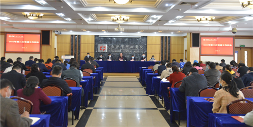 3月18日下午,我院2022年第二次党建工作例会在办公楼二楼多功能厅召开。全体党委班子成员,各党总支和党支部书记、委员参会,党委委员、副院长蔡岳祥主持会议。