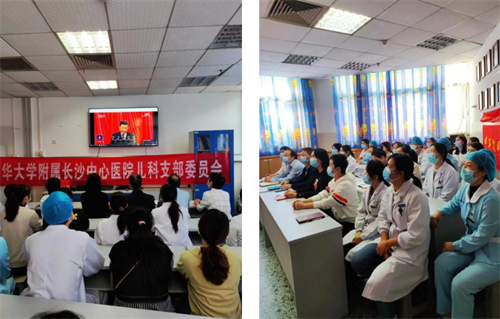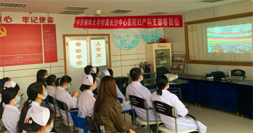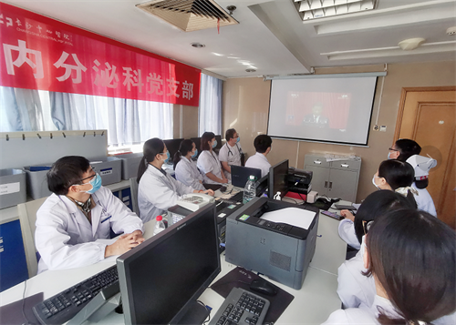 10月16日,儿科党支部的党员们佩戴党员徽章在教研室集体收看中国共产党第二十次全国代表大会开幕直播盛况。当会议开幕,全场起立,一同高唱中华人民共和国国歌,认真聆听习近平总书记所作报告,热烈的掌声一次次响起,所想所感也开始在心中萌生。