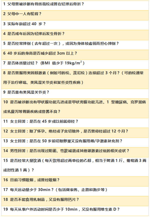 如何判断自己是否存在骨质疏松?徐诣介绍:可以通过骨密度检查。骨密度检测是目前临床上诊断骨质疏松的金标准。那么哪些人群需要做骨密度检测呢?以下问题,只要其中有一题回答结果为 “是”,就提示可能存在骨质疏松症的风险,建议进行骨密度检查。当然,即使题目全部回答“是”,也不意味着您已经患有骨质疏松,具体需要咨询专业医师。