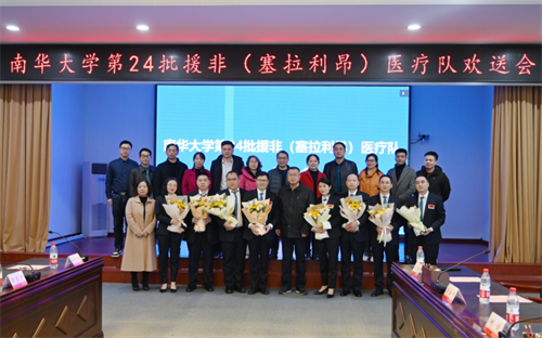 2月25日下午,南华大学在校第一办公楼举行了第24批援塞拉利昂医疗队欢送会。欢送会上,南华大学附属长沙中心医院党委副书记、副院长刘鸣江介绍了此次援塞拉利昂医疗队总体情况。南华大学党委委员、副校长姜志胜嘱咐医疗队一要牢记援外使命,以实际行动讲好中国故事,为推动构建人类卫生健康共同体作出更大贡献;二是要认真履行职责,用精湛的技术和良好的医德为当地人民服务,帮助当地医疗卫生人员提升技术;三是要树立团队意识,团结队友、互相帮助,使援非医疗队成为一个有凝聚力和战斗力的团队;四是要提高自身修养,加强政策学习、业务学习和语言学习,熟悉受援国的法律法规,了解当地的风俗习惯,为中非友好作出积极贡献。