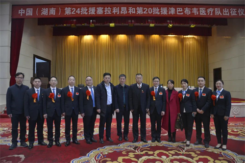 2月27日上午,中国(湖南)第24批援塞拉利昂和第20批援津巴布韦医疗队出征仪式在在湖南宾馆举行。