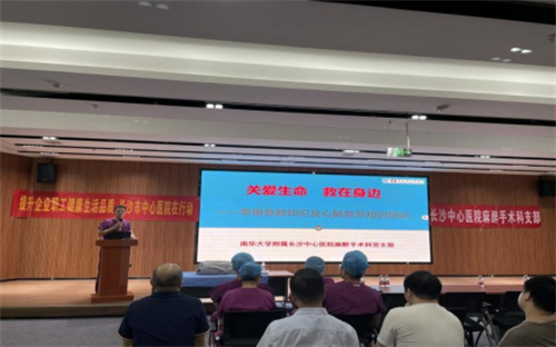 为落实长沙市总工会关于提升职工健康生活品质的文件精神,普及企业职工急救知识,提高自救互救能力和社会应急能力,8月31日下午,社会工作办组织麻醉手术党支部来到湖南大族装备有限公司,为企业领导和职工开展了别开生面的急救知识理论与操作培训课堂。现场有50余名领导职工参与了此次培训。