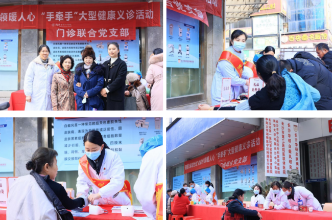 为认真开展“一月一课一片一实践”活动,立足岗位做贡献,着眼于切实解决人民群众看病就医的实际问题,加强健康和医学知识的宣传普及,推行便民惠民措施,努力为人民群众健康服务,2023年12月1日,长沙市中心医院门诊联合党支部组织皮肤科、内科专家团队携手支部结对的医联体单位长沙华研皮肤病医院党支部以及留芳岭社区党工委,共同开展“手牵手”“健康义诊进社区,党建引领暖人心”义诊活动。