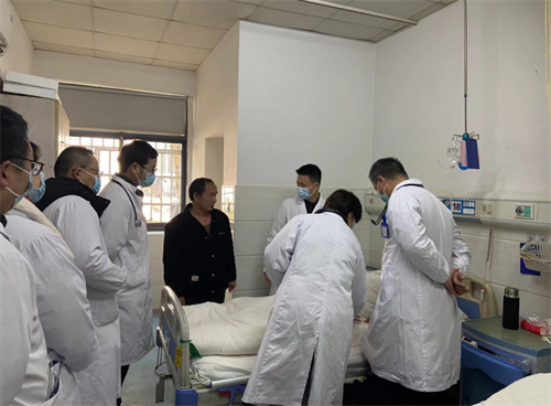 专家们来到病房与患者们进行“零距离”问诊与体查,查看胸片结果,并针对临床中的疑难点问题为卫生院的主治医生提出指导性诊疗意见。