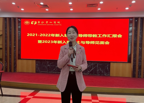 3月19日,长沙市中心医院(南华大学附属长沙中心医院)护理部于二楼多功能厅举办2021—2022年新入职护士导师带教工作汇报会暨2023年新入职护士与班主任、导师见面会。护理部主任吴传芳、副主任董启玉、全体班主任、导师、2023年新入职护士以及2021、2022年新入职护士代表参加了本次大会,会议由董启玉主持。