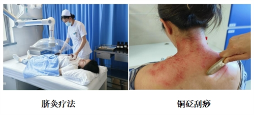 (4)中医护理:由经验丰富的护理团队组成,发挥中医护理整体观念,辨证施护的特色,为患者提供中医特色护理,中医养生保健,中医药膳,饮食调护,情志调摄和健康咨询为一体的综合护理服务,利用传统的中医特色护理技术如:铜砭刮痧、火龙罐综合灸、督脉灸、热敏灸、耳穴压豆,铜砭刮痧、艾灸等疏通经络,达到平衡阴阳,调动机体自愈力,治病调养,和调整亚健康状态的目的,从而帮助患者提高自我管理能力,提升生活质量。