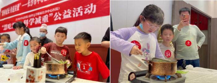 “科学减肥,我们要坚持管住嘴、迈开腿……”营养健康专题授课后,医院特别组织“小小烹饪艺术家”实践。