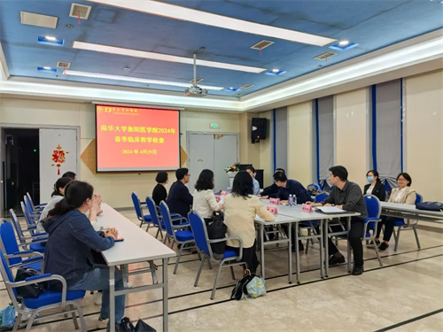 为持续加强临床教育教学过程及结果的监督与评价,确保临床实践教学质量。2024年4月25日,南华大学衡阳医学院党委副书记卢清华,南华大学附属第一医院教育培训部副主任张晶晶,南华大学附属第二医院耳鼻咽喉头颈外科副主任石大志,南华大学衡阳医学院党政办主任肖建忠、研究生培养办主任王双一行五人对我院进行春季临床教学检查。长沙中心医院临床学院副院长赵飞骏、科教部主任杨芬及科教部教学管理人员、医院教学督导、临床科室带教老师们陪同检查。
