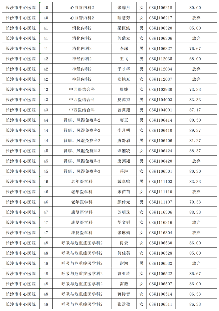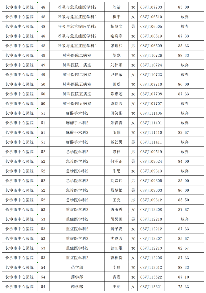 2024年长沙市卫生健康委员会直属事业单位公开招聘跟班实习考核成绩公示