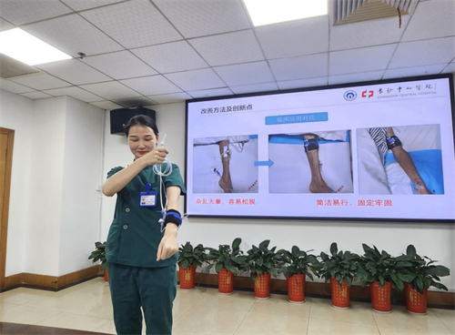 本次决赛,《大分割调强放疗技术在乳腺癌改良根治术后的应用》《卓越式整体护理排班模式的应用》《改良式下肢周径测量专用尺》等17个创新成果项目以PPT现场路演的形式,从研发背景、创新点、社会经济效益等方面进行了阐述。