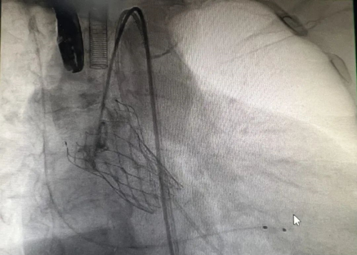 经过充分的准备,7月30日,手术在导管室内顺利进行。在麻醉医师的精心操作下,超声科医师迅速置入食道超声以监测手术进程。杨继承主任医师带领的心胸外科医师团队凭借高超的技艺,在严爷爷左右股动脉处各开一微小切口,随后在导丝引导下,成功将人工瓣膜送达主动脉瓣位置并完美释放。术后,严爷爷的血流动力学立即得到显著改善,各项生命体征平稳。