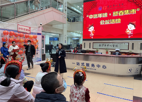养生药膳、中医茶饮、年味灯谜、穴位体验……1月22日上午,在农历小年来临之际,长沙市中心医院(南华大学附属长沙中心医院)团委、宣传部、院工会、中西医结合科、药学部等科室携手交通银行,共同举办“中医年味·新春集市”公益活动,让市民们在浓厚的春节氛围中,感受中医文化的魅力。