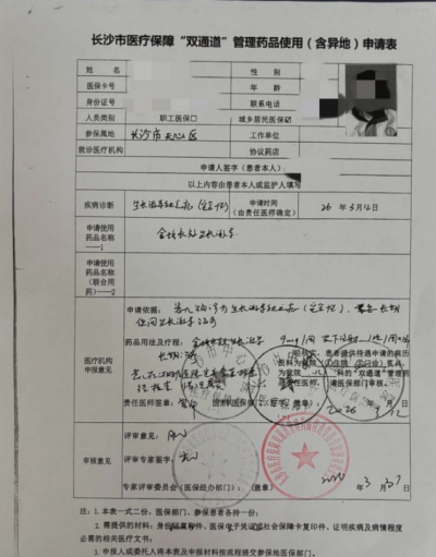 A生长激素属于医保“双通道”管理药品,必须由医保局备案认定的双通道责任医师开具专用申请表,医保部门才受理。