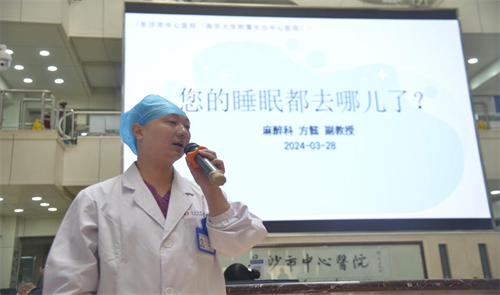 随后,麻醉手术科副主任医师方懿针对长期睡眠障碍的危害、适宜的麻醉睡眠干预等方面进行科普讲座,麻醉医生针对睡眠障碍群众制定个体化、安全有效性、多维度干预方案,帮助他们有效提高其生活质量和健康水平。