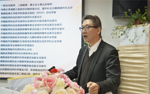 刘鸣江副院长代表医院致辞,对专家们的到来表示诚挚的欢迎和衷心的感谢。刘院长对于普外科在广度和深度的发展寄予厚望,指出消化道肿瘤是一个世界性的难题,MDT治疗作为一种多学科综合治疗模式,已经成为当今国际上治疗消化道肿瘤的主流趋势。我们将以此次研讨会为契机,进一步加强与湘雅的合作与交流,提升全院外科的整体实力,为广大患者带来更加安全、有效、人性化的治疗方案。