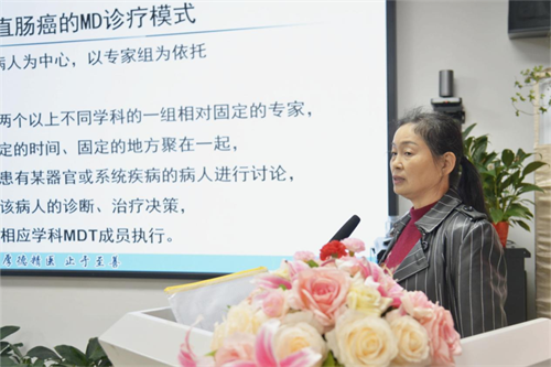 接下来由黄邵斌副主任会议主持,首先由李小荣主任介绍了湘雅三医院胃肠外科进行MDT工作的宝贵经验。李主任作为胃肠外科资深专家,对于MDT有独到的见解,在MDT的团队建立、人员配置、讨论时机、成效评估等方面都作出了详尽的指导,为我院胃肠外科的MDT工作指出了明确方向。