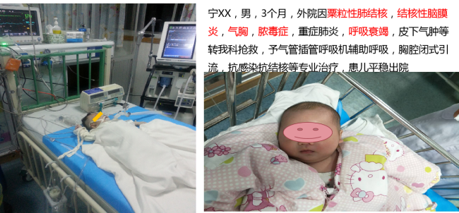 儿童结核病综合救治能力:湖南省唯一学生儿童结核专科,设儿童结核重症病区,临床业务水平省内领先,全国先进,部分技术全国领先。年收治病人量达600-800人次,长期位居全国前列。常年吸引大量来自全国各地的疑难、难治、重症、耐药性儿童结核患者前来就诊。常规开展18岁以下(含新生儿)电子支气管镜下灌洗+注药、钳夹和球囊扩张术、经皮肺穿刺活检术、肺动脉介入栓塞止血术、关节腔穿刺注药、胸腹腔闭式引流术、胸腔镜、心包闭式引流术、侧脑室引流术、淋巴结穿刺活检、血液净化、营养管理、深静脉置管、徒手鼻空肠置管等众多全年龄阶段覆盖的先进专科诊疗技术。此外,还常年开展多学科诊疗模式,联合各外科、药剂科等多学科对特别危重、疑难、难治性儿童结核病进行卓有成效的救治。
